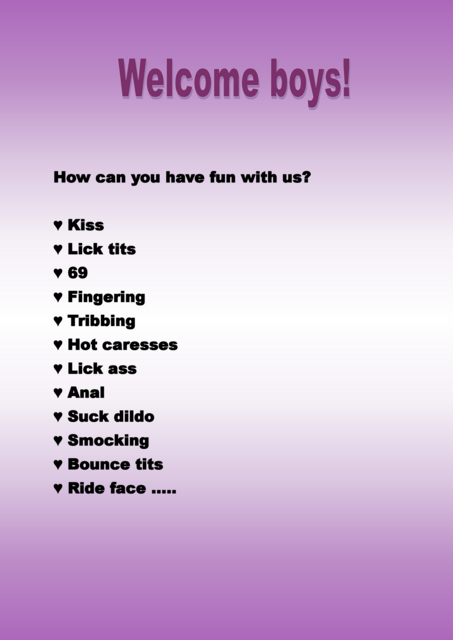 HI! we want you to join us in every session of our show to give you the greatest pleasure of your life, when you are ready you can enter to make yourself feel pleased, remember you are one click away from your happiness... we are waiting for you, kisse